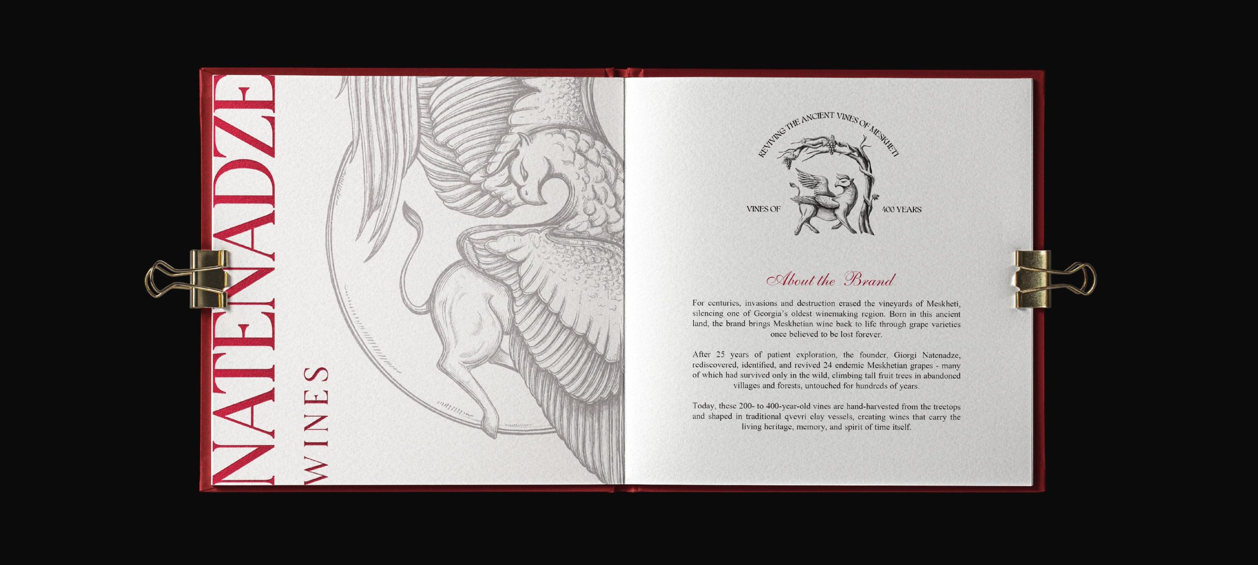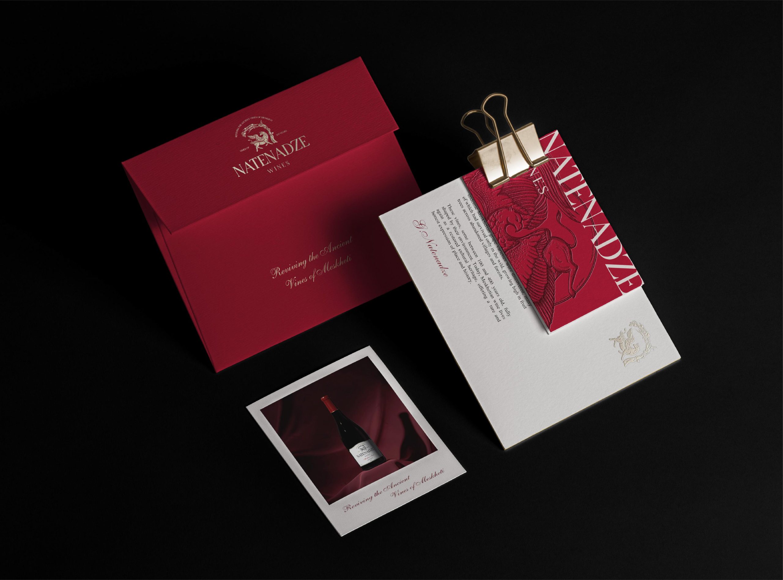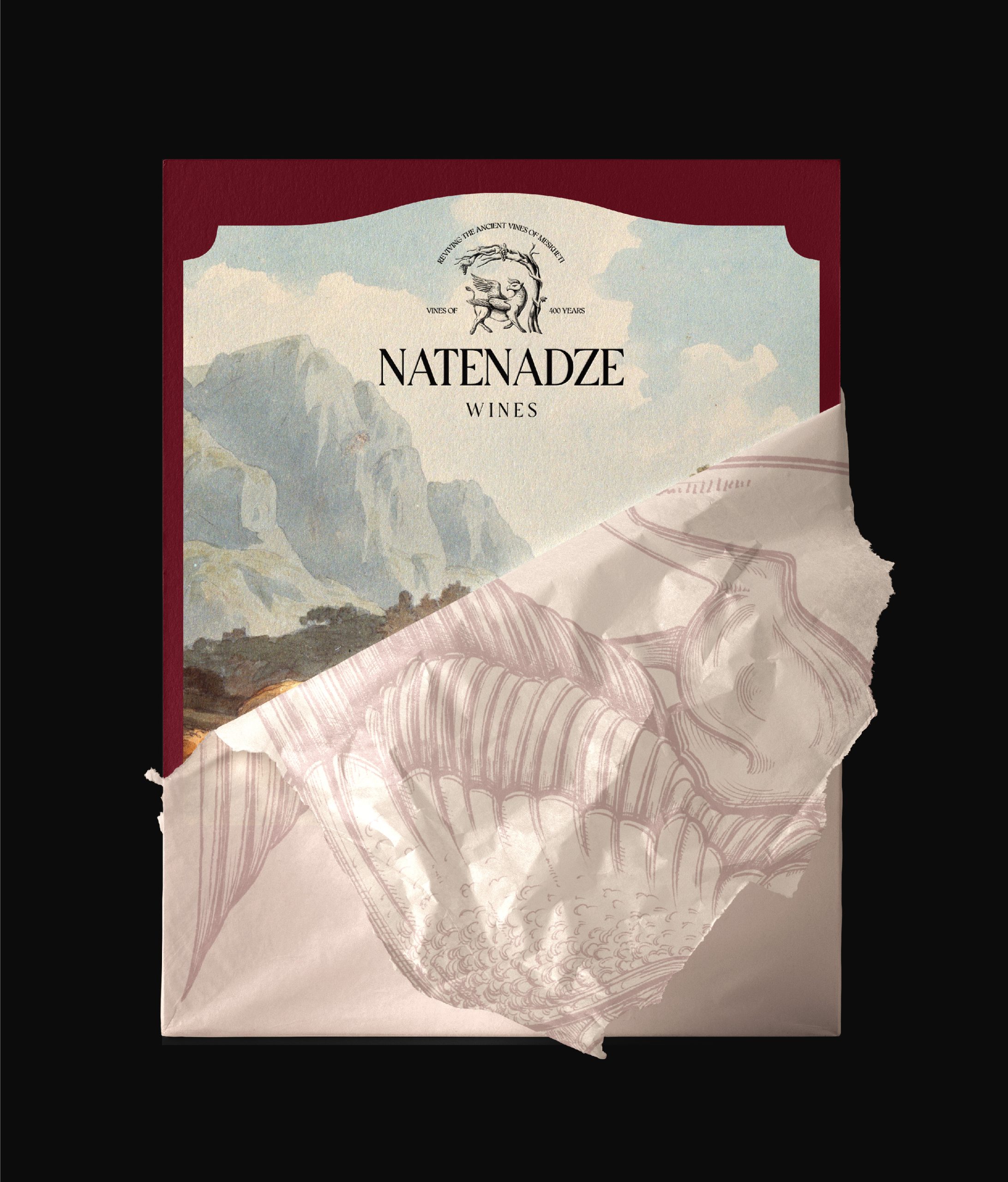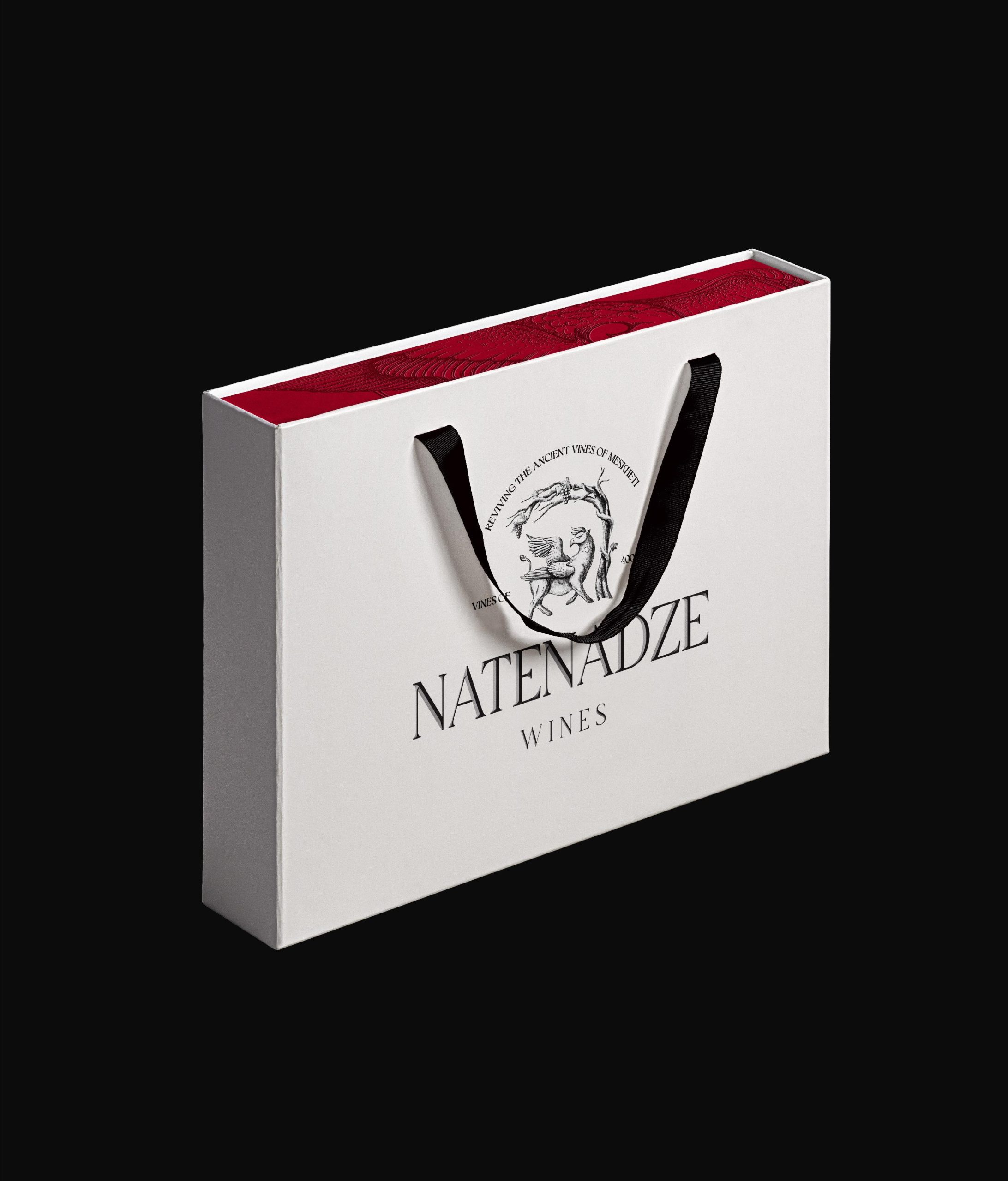 The visual identity reflects the history and character of the Natenadze wine brand.
